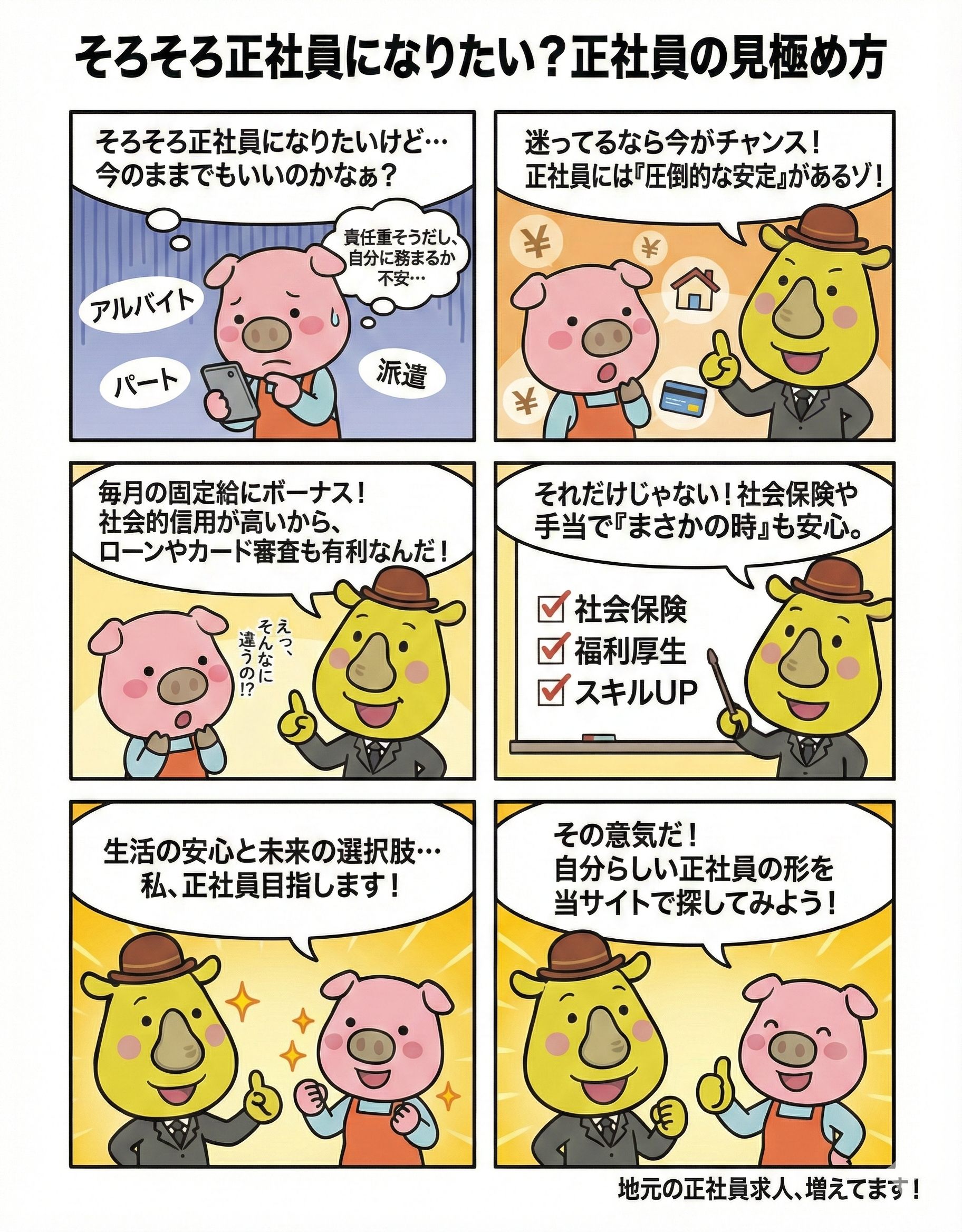 正社員になることは、単に雇用形態が変わるだけでなく、「生活の安心」と「未来の選択肢」を手に入れることでもあります。もちろん、責任は増えますが、その分得られるものも大きいはずです。ぜひあなたのライフスタイルに合った地元の正社員求人を探してみてください!